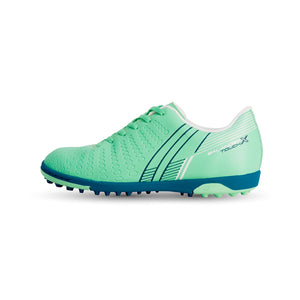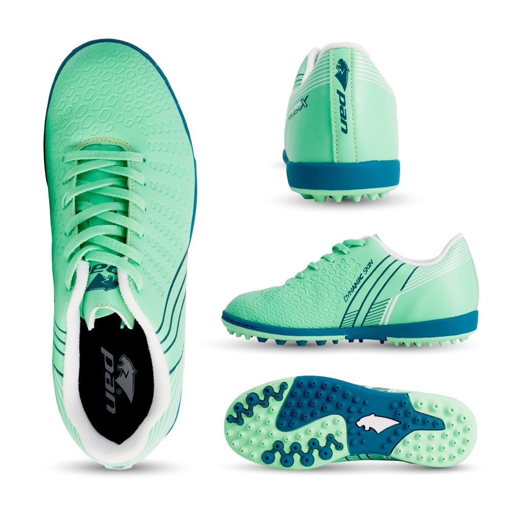 OUTSOLE: พื้น Turf หรือพื้นร้อยปุ่ม ออกแบบมาเพื่อหญ้าเทียมโดยเฉพาะ ยึดเกาะสนามได้ดีและยังรองรับน้ำหนักได้อย่างมีประสิทธิภาพ จะช่วยลดอาการบาดเจ็บจากสนามหญ้าเทียม